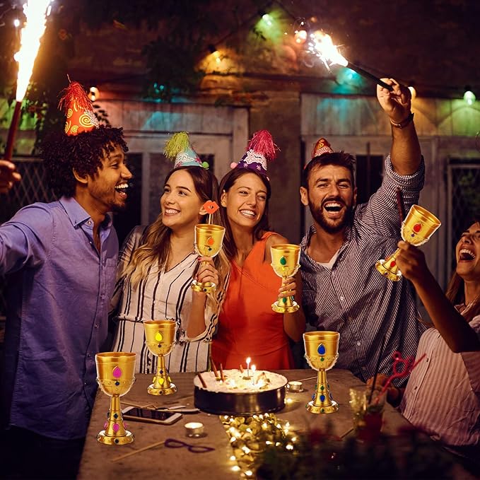 - Vintage Gemstone Design: the crown goblet cups are designed with 6 colors fake gemstones, like purple, green, blue; The small and large gemstones and the vintage texture on the surface make the cups beautiful and retro; The appearance is novel and easy, and the use is full of grace