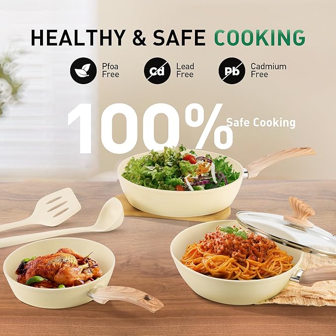 MAISON ARTS Pots and Pans Set Non Stick, Kitchen Cookware Sets Nonstick, 12 Piece Granite Cooking Pot and Pan for Induction, Stovetop, Beige