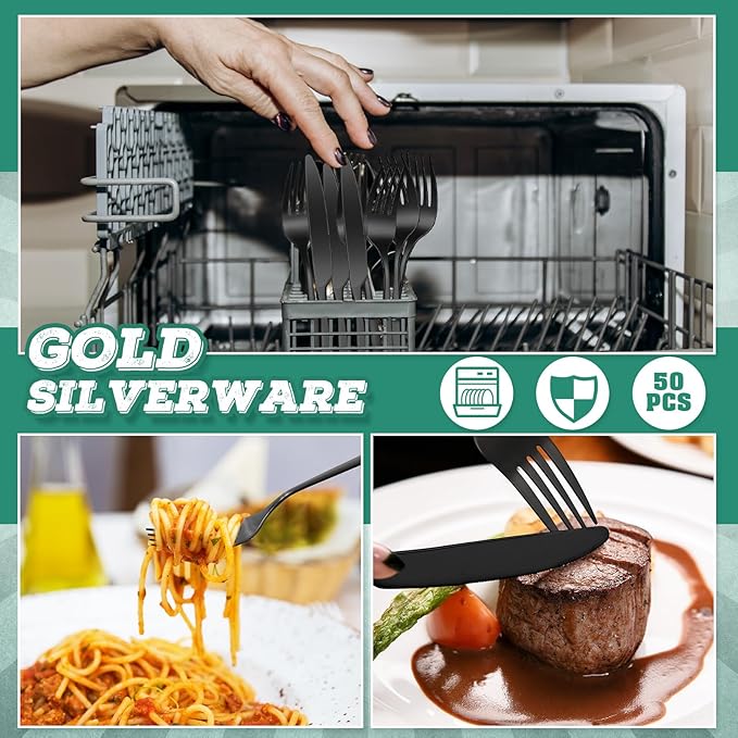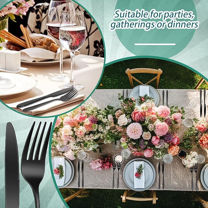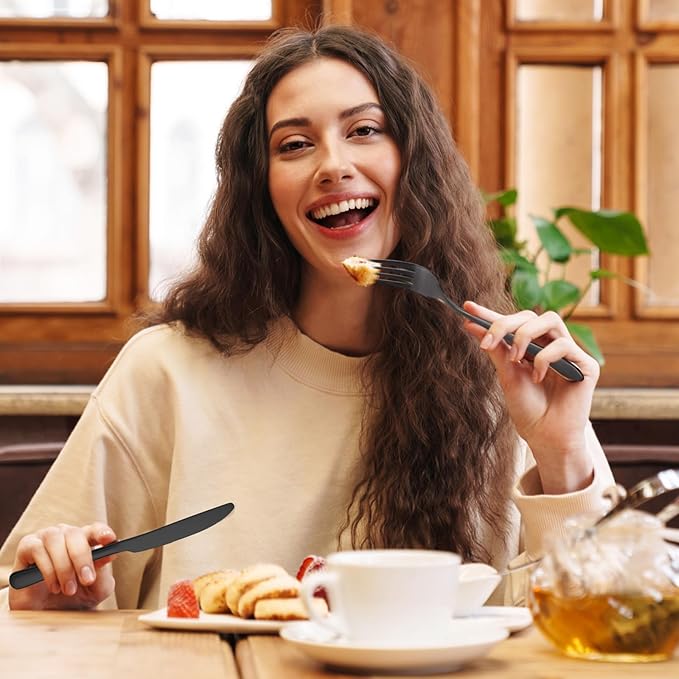 - Quality Material: the forks and knives set is crafted with quality stainless steel; The durability of this material ensures that the utensils will not warp, discolor, or bend easily, which adds longevity, at the same time, it is also dishwasher safe, bringing you convenience