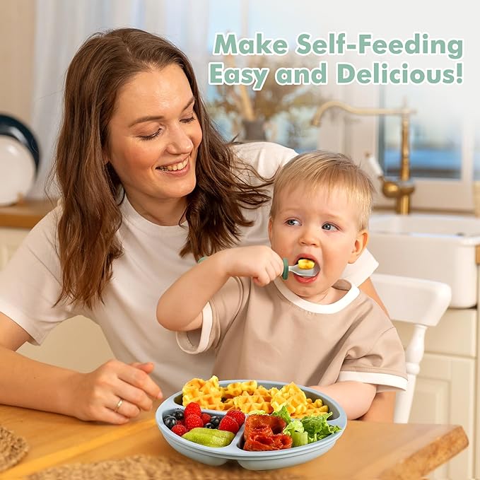 - BABY FOOD-GRADE MATERIAL: Crafted from 18/8 stainless steel and silicone, free from harmful chemicals like BPA, PVC and phthalates. Reliable quality ensures these utensils are dishwasher-safe for easy cleaning, saving time and effort while enjoyable meals