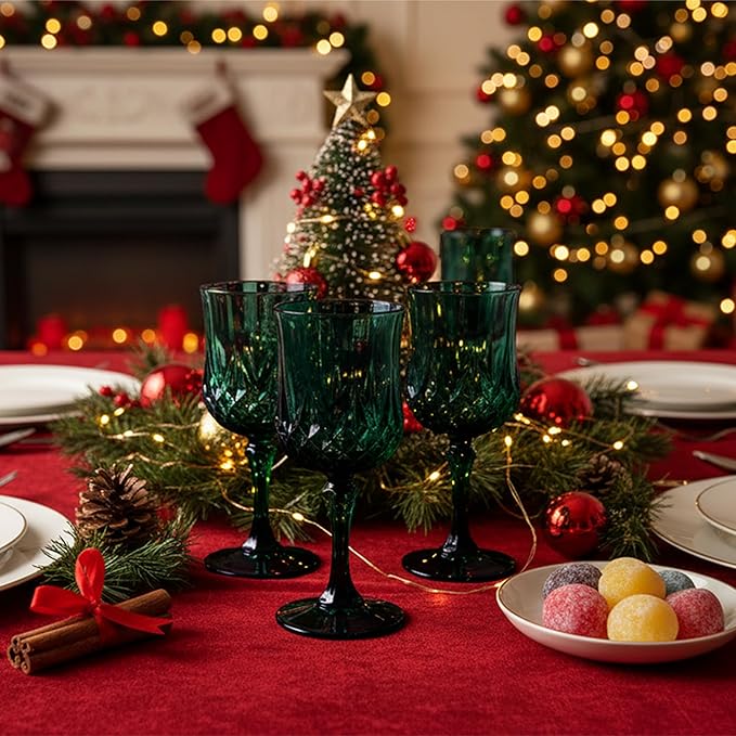 Plastic Wine Glasses,Plastic Goblets Vintage Style Cordial Drinking Glasses for Wedding Reception, Christmas Grand Event Party Supplies (12, Green)
