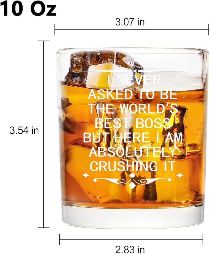 - NOVELTY WORDS: What the boss whiskey glass said - I never asked to be the world's best boss but here I am absolutely crushing it - is novelty enough to express your appreciate and respect to boss.