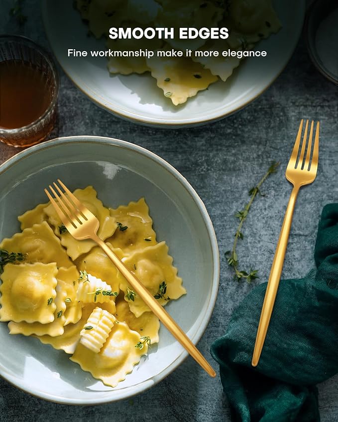 - Matte Craftsmanship: The surface of the silverware is treated with a special matte process, which is both exquisite and anti-fingerprint. The edges are delicately processed and the arc design is just right. Every detail reveals the craftsman's care and pursuit of perfection. The perfect design makes the flatware set show extraordinary texture in a low-key manner, and makes every use a double enjoyment of taste buds and vision