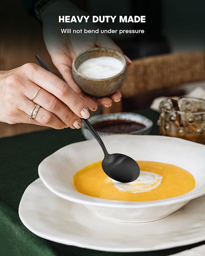 - Heavy Duty Stainless Steel: The cutlery set is made of food-grade thickened stainless steel, so don't have to worry about its quality and can use it with confidence. The extended round handle conforms to the principles of ergonomics, ensuring that every touch is a redefinition of comfort, and long-term use is burden-free. What's more worth mentioning is that the heavy-duty material brings a stable grip experience, which makes people love it