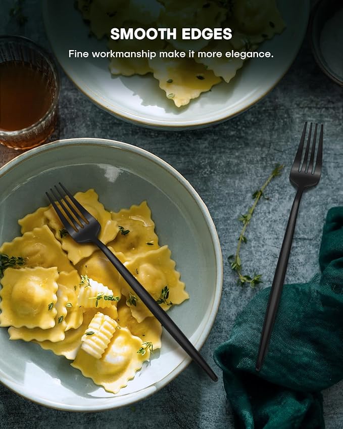 - Matte Craftsmanship: The surface of the silverware is treated with a special matte process, which is both exquisite and anti-fingerprint. The edges are delicately processed and the arc design is just right. Every detail reveals the craftsman's care and pursuit of perfection. The perfect design makes the flatware set show extraordinary texture in a low-key manner, and makes every use a double enjoyment of taste buds and vision