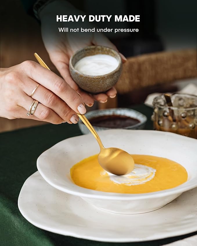 - Matte Craftsmanship: The surface of the silverware is treated with a special matte process, which is both exquisite and anti-fingerprint. The edges are delicately processed and the arc design is just right. Every detail reveals the craftsman's care and pursuit of perfection. The perfect design makes the flatware set show extraordinary texture in a low-key manner, and makes every use a double enjoyment of taste buds and vision