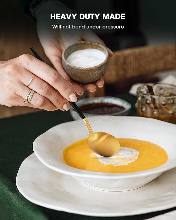 - Matte Craftsmanship: The surface of the silverware is treated with a special matte process, which is both exquisite and anti-fingerprint. The edges are delicately processed and the arc design is just right. Every detail reveals the craftsman's care and pursuit of perfection. The perfect design makes the flatware set show extraordinary texture in a low-key manner, and makes every use a double enjoyment of taste buds and vision