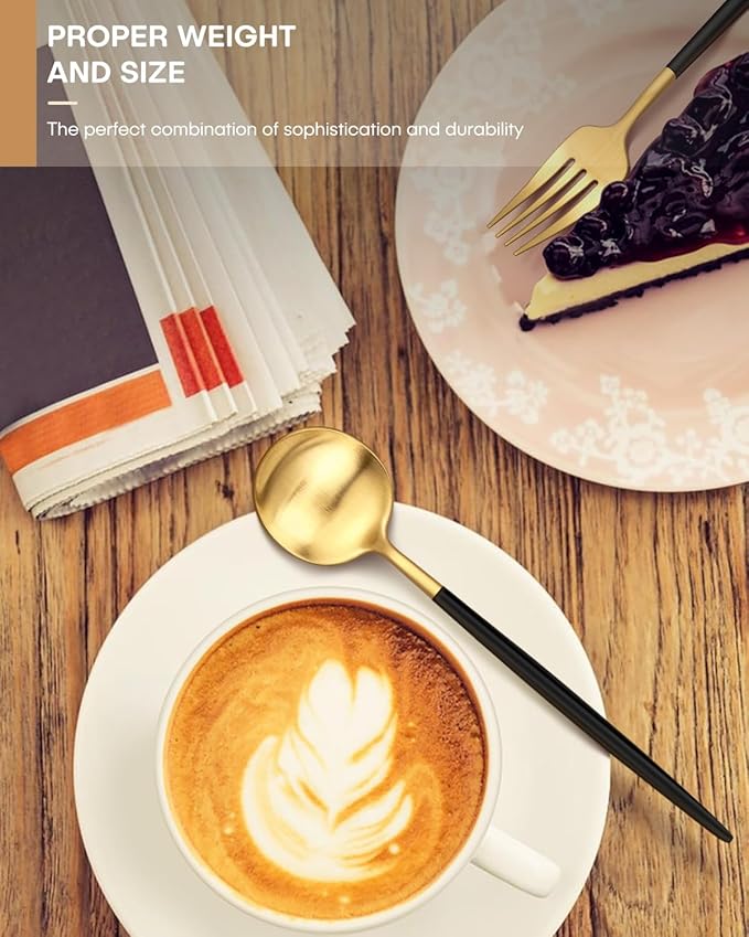 - SUPPORT: If you have any questions about these black handles gold silverware sets, please get in touch with us anytime, we will provide timely assistance in resolve