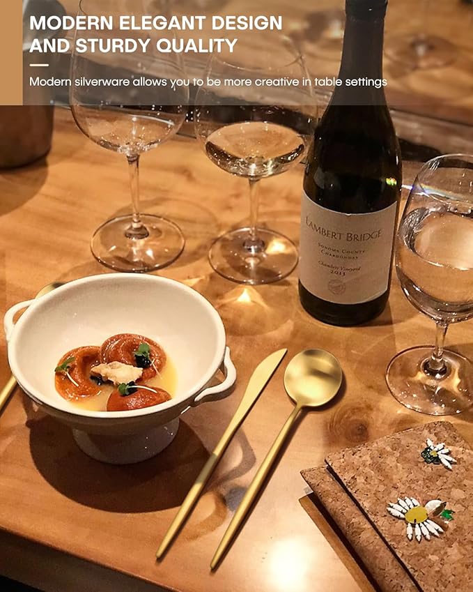- Classic Silhouette Utensil Set: Gold Utensil Sets have classic apparent with clean lines, pleasure-to-hold handles, appropriate weight, and perfect balance added to ensure max comfort during use, which the best choice for daily use or entertain guests