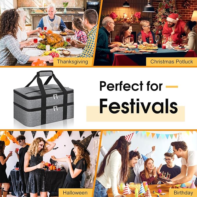 - Details: The casserole dish carrier bag adopt double zipper design, easy to open and close; The internal aluminum film not only holds heat but easy wiped clean with paper towels when encountering dirt; Note: Not machine washable