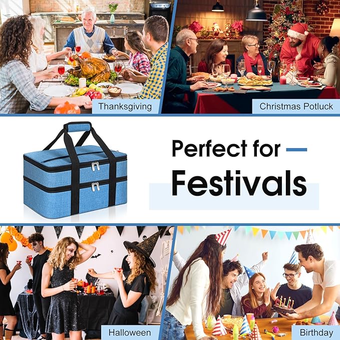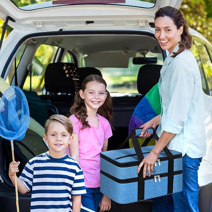 Double Insulated Casserole Carrier, Portable Casserole Carrier for Hot or Cold Food Lunch Tote Warmer or Cooler Bag, Lasagna Lunch Bag for Potluck Parties- Fits 9" x 13" Baking Dish-Azure