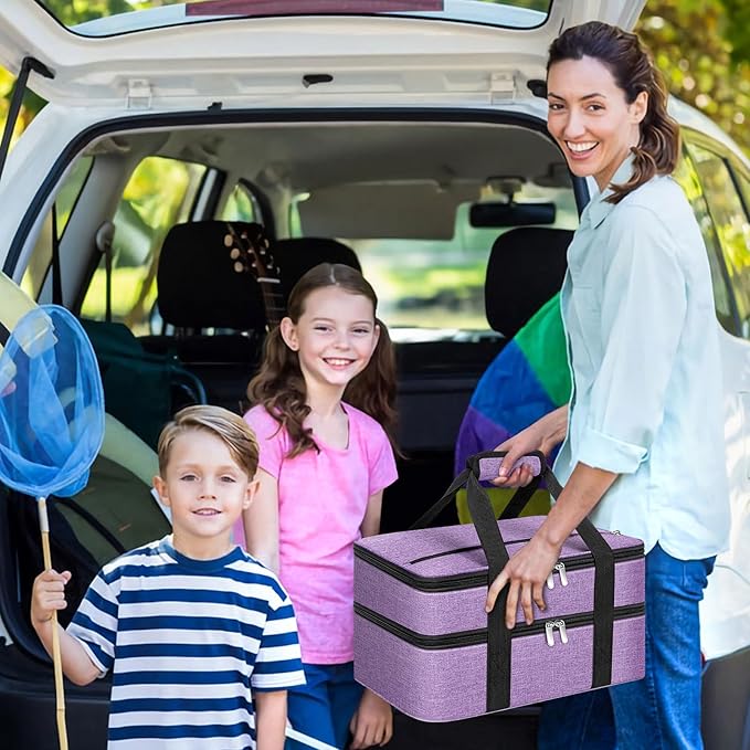Double Insulated Casserole Carrier, Portable Casserole Carrier for Hot or Cold Food Lunch Tote Warmer or Cooler Bag, Lasagna Lunch Bag for Potluck Parties- Fits 9" x 13" Baking Dish-Purple