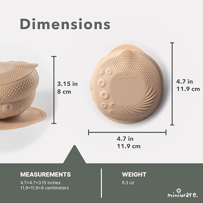 Miniware Sensory Baby Bowl - Almond Butter - Silicone Bowls for baby to Combine Mealtime with Sensory Development - 100% Food Grade Silicone Baby Bowls - BPA Free, Non-Toxic Todddler Bowls