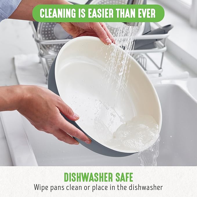 - TOXIN-FREE CERAMIC NONSTICK: Our healthy ceramic nonstick coating is derived from sand and free of PFAS, PFOA, lead, and cadmium for worry-free cooking. The incredible ceramic nonstick coating delivers easy releases, seamless transfers, and effortless cleaning.