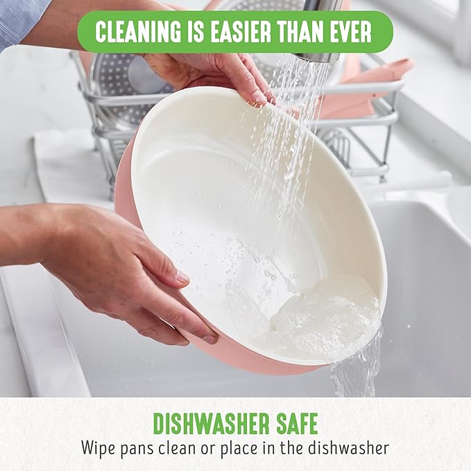 - TOXIN-FREE CERAMIC NONSTICK: Our healthy ceramic nonstick coating is derived from sand and free of PFAS, PFOA, lead, and cadmium for worry-free cooking. The incredible ceramic nonstick coating delivers easy releases, seamless transfers, and effortless cleaning.