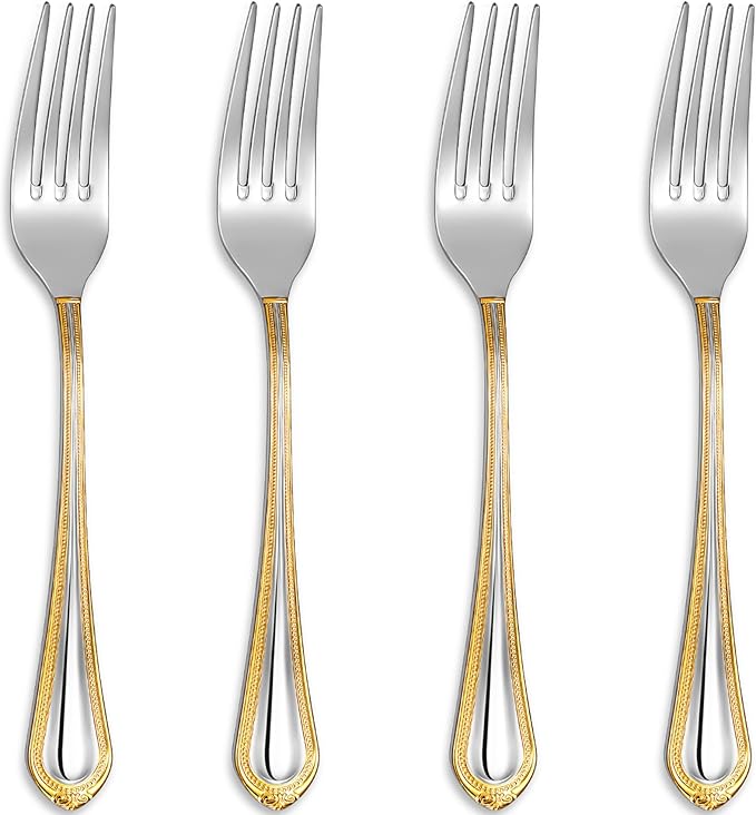 KEAWELL Pearl Edge 4-Piece Premium Fork Set, 18/10 Stainless Steel, Fine Silverware Forks with Mirror Finish and Exquisite Craftsmanship, Gold Accent, Dishwasher Safe (4, 8" Dinner Forks)