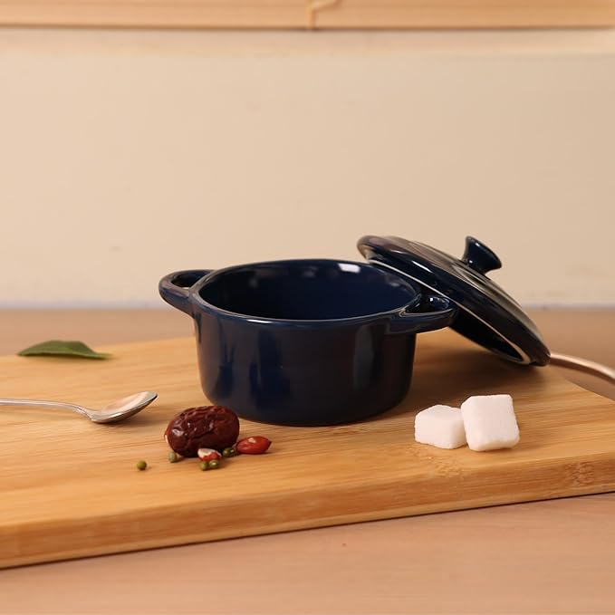 - SPACE SAVING: Our mini dutch oven pot with lid are stackable so you won't waste your kitchen space, say goodbye to cluttered cupboard space. Thanks to the small handles on the side of the ceramic baking dish with lid, they can be easily removed from the oven and save on cutlery. Stable and not easy to tip, these casserole dish set with lids are stain-resistant and easy to clean.