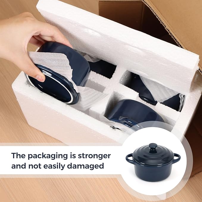 - Versatile: Ceramic casserole dish with lid is suitable for all meals. For breakfast, serve eggs, tomatoes and individual omelets. Ceramic mini cocotte set can also be used for main dishes, portion control and side dishes such as baked dishes, macaroni and cheese, risotto, lasagne, quiche and french fries. Make desserts such as cheesecake, pudding, brownies, shuffleboard and ice cream. The soup bowls with handles and lids can be used in ovens and air fryers, but not on the stovetop.