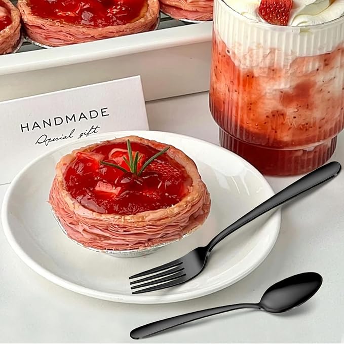- 【Exquisite Workmanship and Elegant】These forks, spoons and knives are carefully polished, with smooth edges and no rough edges that will not scratch your mouth while eating. The surface of the silverware is polished black, and the unique black design adds a luxurious, elegant and solemn atmosphere to dining