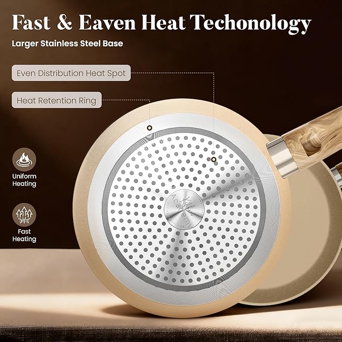 Kitchen Academy Induction Pots and Pans Set Non Stick - 12 Pieces Nonstick Kitchen Cookware Set, Granite Cooking Set Pots and Pans, Beige