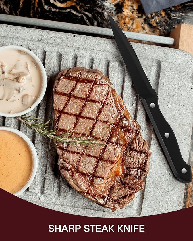 - 24-Piece Exquisite Set - EUIRIO 24-piece exquisite silverware set with hammered handle is made for a family of 4 people. It includes steak knives, dinner knives, dinner forks, dinner spoons, tea spoons and salad forks (4 pieces each). From elegant dinner knives and forks to practical spoons, and steak knives specially prepared for steak lovers, each piece is ingeniously crafted, making every dinner like the experience of a high-end restaurant.
