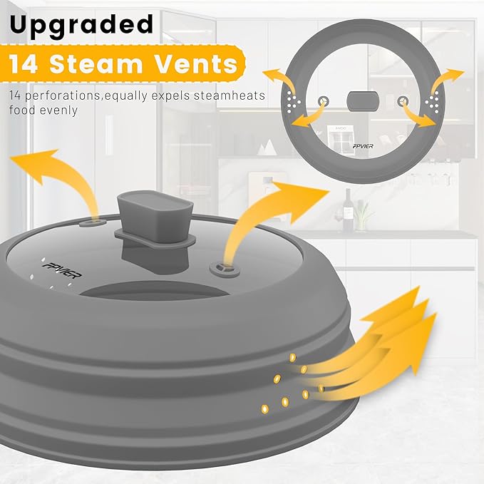 - 【Upgraded 16 Steam Vents】 Compared to the regular one, our upgraded microwave food cover has 14 extra side steam vents. Your food will be no more wet with this upgraded collapsible microwave splatter cover.