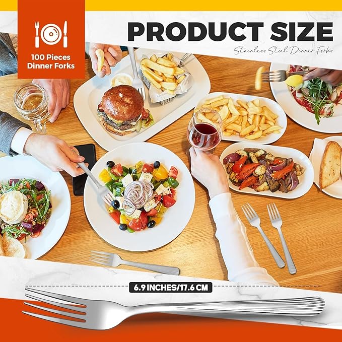 Minatee 100 Pieces Dinner Forks Bulk Set 6.9 Inches Stainless Steel Metal Forks Flatware Fork Silverware Salad Forks Table Fork Mirror Polished for Home Restaurant Eating Kitchen Utensils