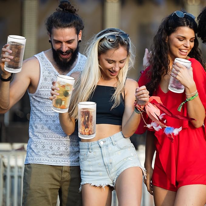 - 【Suitable for Any Occasion】The elegant glassware are great for any hot and cold drinks for any occasion. You can use it to drink refreshing beer, make perfect cocktails, whiskey, all kinds of tea, juice, milk shake. It is widely loved in homes, kitchens, milk tea shops, cafes, bars and restaurants.