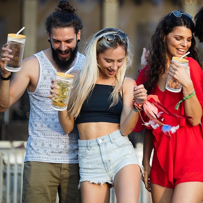 - 【What You Will Get】 4PCS 16OZ Glass Cups, 4PCS reusable glass straws, 2PCS cleaning brushes. ---The cups are dishwasher safe and microwave safe, very practical combination set, take it home without hesitation!