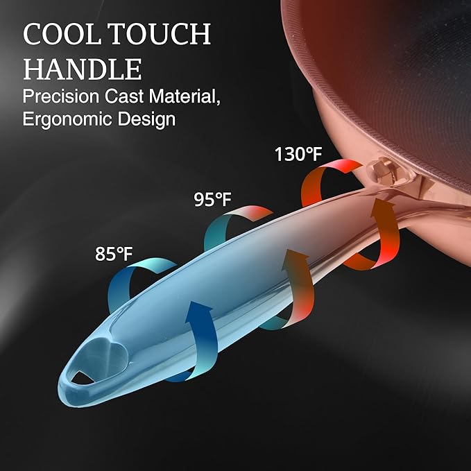 - 5-Layer Structure : The stainless steel frying pan features a nonstick titanium ceramic interior, a 4mm extra-thick aluminum core, and a dual-layer 403 stainless steel design, ensuring rapid and even heat distribution along with outstanding durability. The outer star-trail etched layer prevents yellowing caused by flames and stains. Its five-layer structure locks in heat, preserving flavors and textures for an exceptional cooking experience.