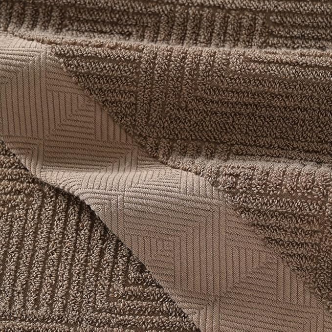 sense gnosis Chocolate Bath Towel Set of 2 Premium 100% Cotton Herringbone Striped Weave Ultra Soft Highly Absorbent Bath Towel for Bathroom 27 X 55 Inch