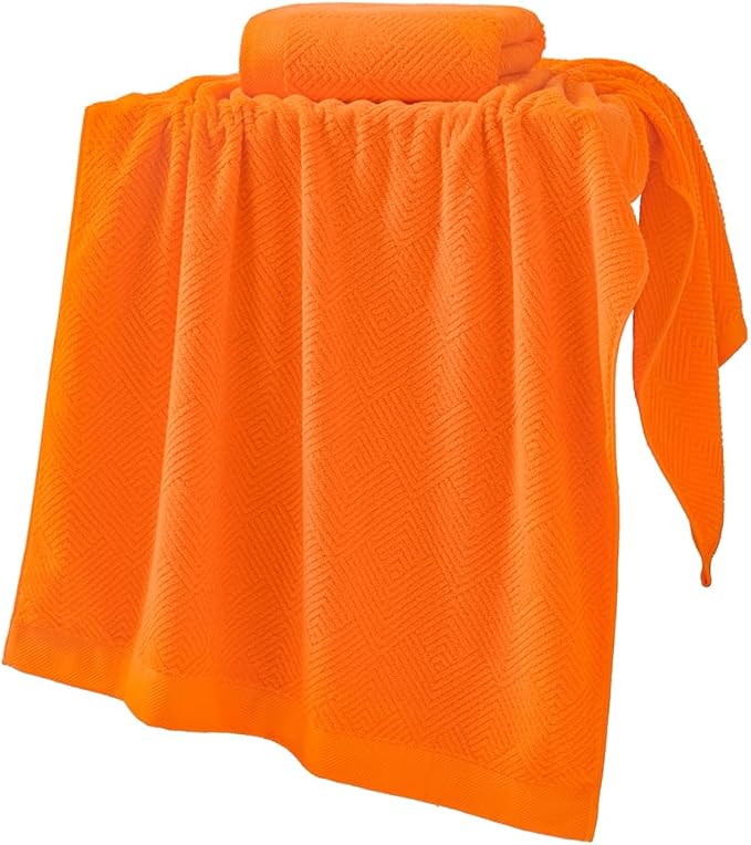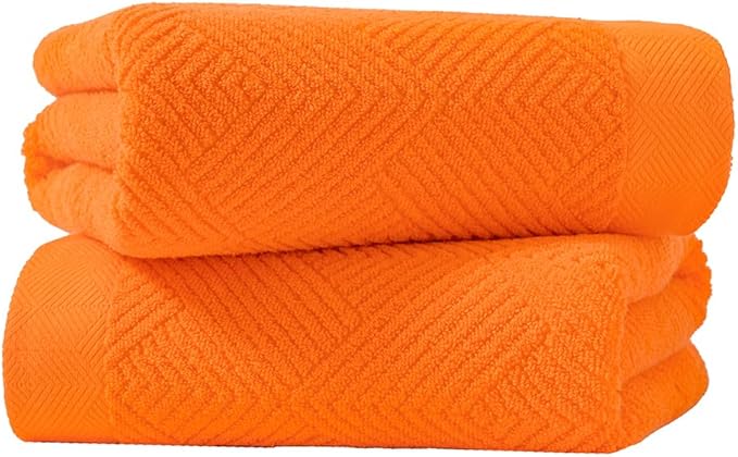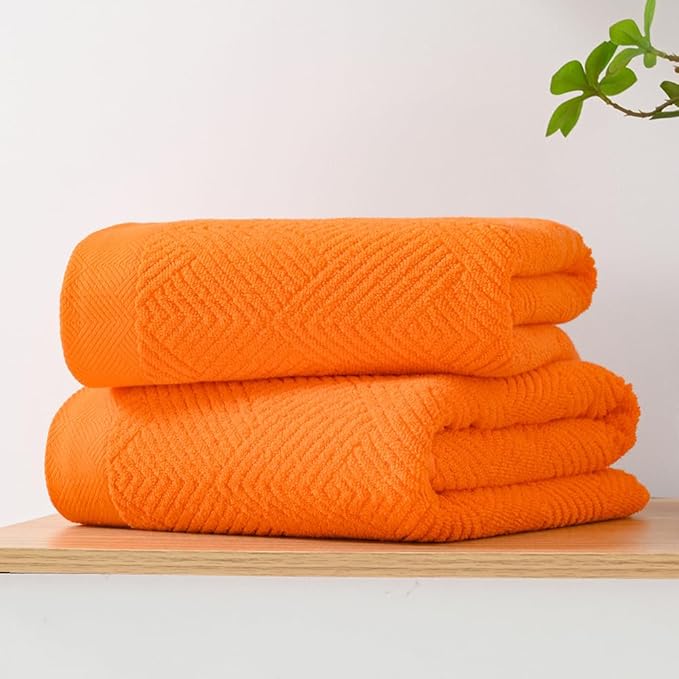 sense gnosis Super Soft Orange Bath Towels Terry Striped Weave Pattern Ultra Absorbent 100% Cotton Towel for Bathroom(27 X 55 Inch), 2 Pieces