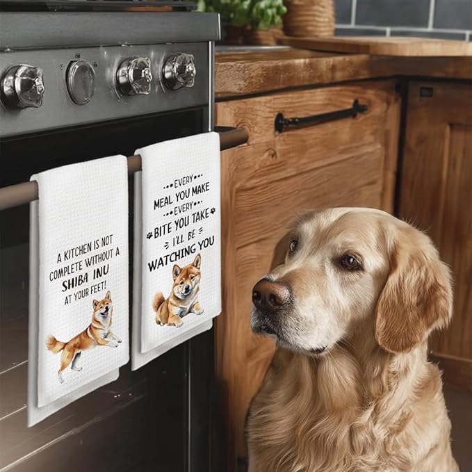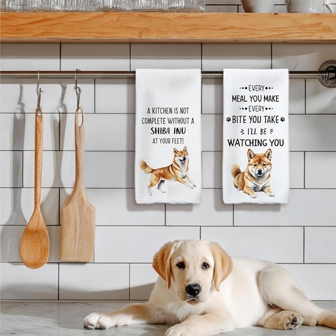 Shiba Inu Kitchen Towels Set of 2, Shiba Inu Gifts, Shiba Inu Dog Decorative Hand Towels, Shiba Inu Dog Dishcloths Dish Towels Tea Towels for Kitchen, Dog Bathroom Kitchen Decor, 16x24inch