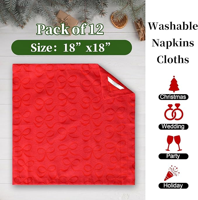 - Elegant Design: The Red Bows Jacquard pattern adds a touch of sophistication to your table setting. This 12-pack set is perfect for weddings, dinners, parties, and holiday gatherings, making your events truly memorable.