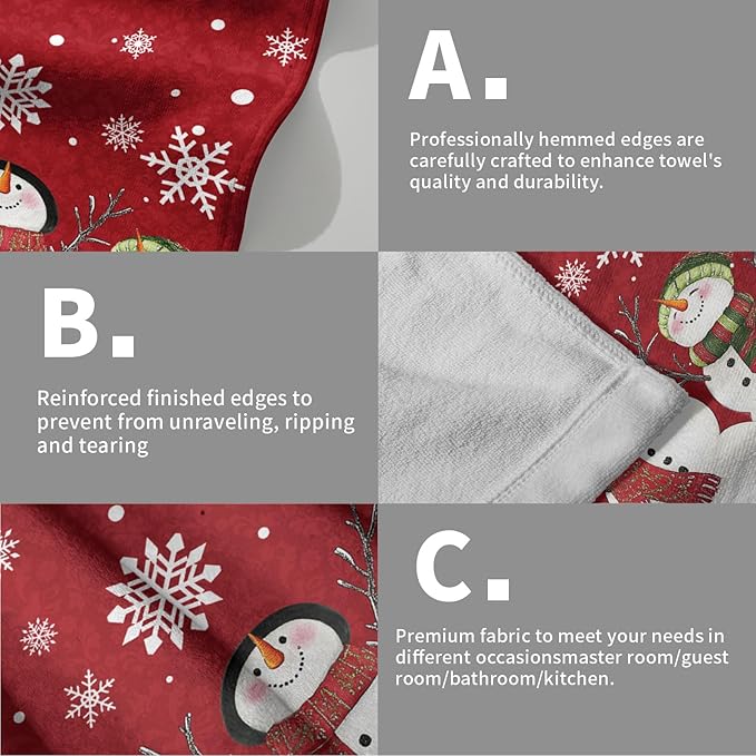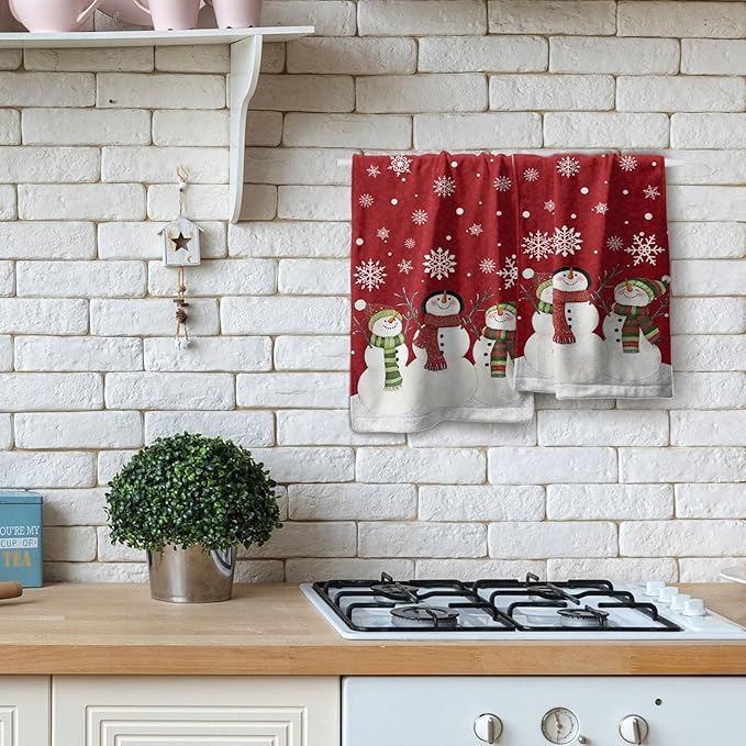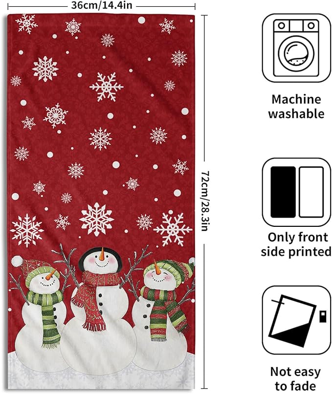 - ❉【Hand Towel Size】Snowman kitchen towel size 14.4 x 28.3 Inch (36 x 72 cm),set of 2. which is large enough to handle most kitchen tasks. From drying dishes to wiping down countertops ,provide ample coverage, making them a practical and essential tool in any kitchen.
