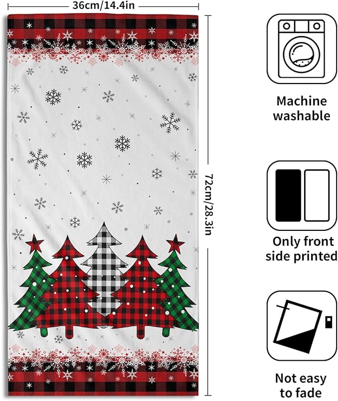 - ❉【Hand Towel Size】Xmas tree buffalo plaid kitchen towel size 14.4 x 28.3 Inch (36 x 72 cm),set of 2. which is large enough to handle most kitchen tasks. From drying dishes to wiping down countertops ,provide ample coverage, making them a practical and essential tool in any kitchen.