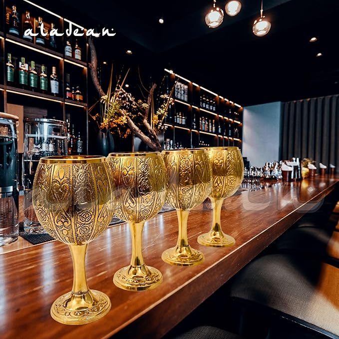 - Medieval Goblets & Royal Vintage Chalice - 1pc Handmade Solid Brass Red Wine Glass Cup Embossed King Arthur Chalice Medieval Goblet - Gothic Retro theme. 1 pc wine cup chalice goblet. Novelty Italian style Unbreakable stemware.
