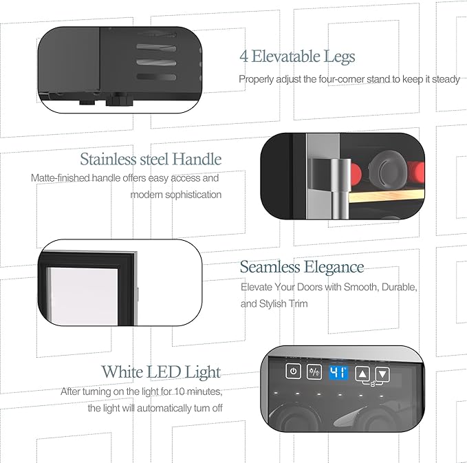- Silent Compressor: The Luztolent 19-bottle wine cooler utilizes a cutting-edge compressor cooling system to chill your wine. With an internal shock absorber that minimizes bottle vibrations, quiet operation, and enhances wine stability
