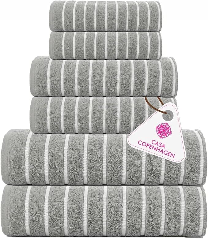CASA COPENHAGEN Ecstatic 6 Pieces Towel Set- Dark Grey, 600 GSM 2 Bath Towel 2 Hand Towel 2 Washcloth, Designed in Denmark Made of Soft Egyptian Cotton for Bathroom, Kitchen & Shower