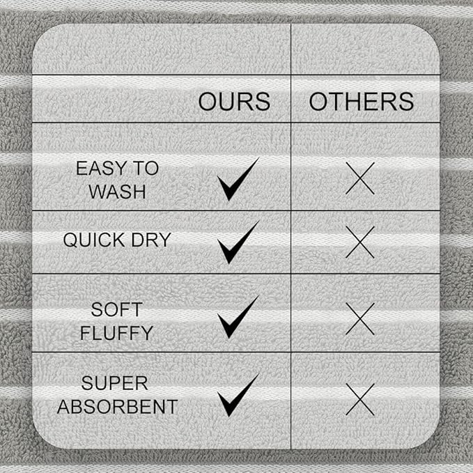 - INGREDIENTS: The set includes 2 pieces of washcloths measuring 12 x 12 inches, 2 pieces of towels measuring 16 x 28 inches and 2 pieces of bath towels measuring 27 x 55 inches.