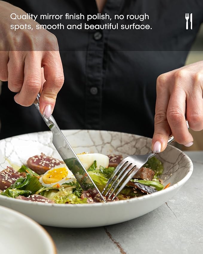 - Heavy-Duty And Ergonomic Design: Our utensil Set design with ergonomics in mind, uses thickened food-grade superior sturdy stainless steel that offers durability, while exceptional balance weight to a comfortable grip. Easy enjoyable meals without worry!
