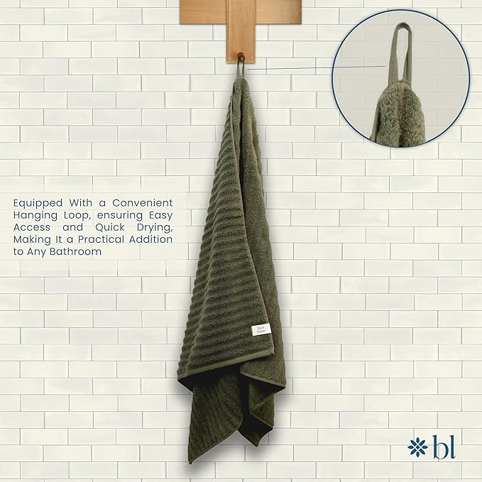Blue Loom Ribbed Bath Towels Set, 100% Cotton 600 GSM, Soft Absorbent Durable Quick Drying 2 Bath Towels for Bathroom - Mason Set of 2 Moss Green (58" x 30" Inch)