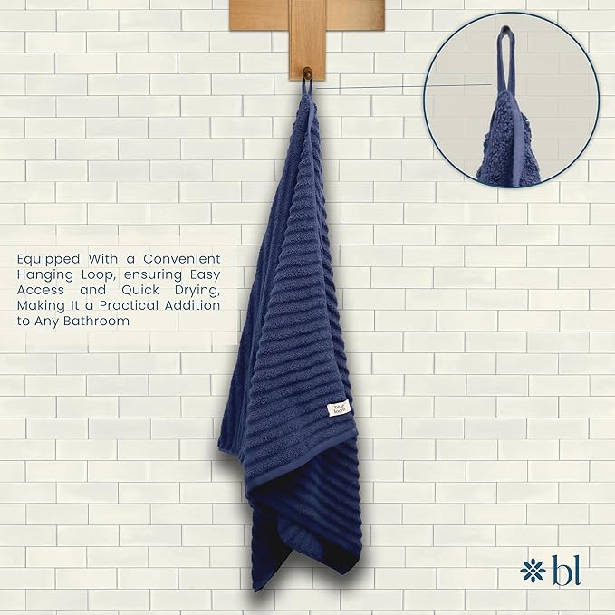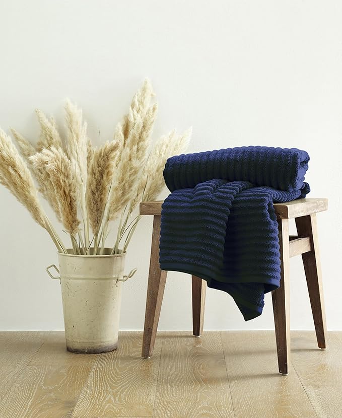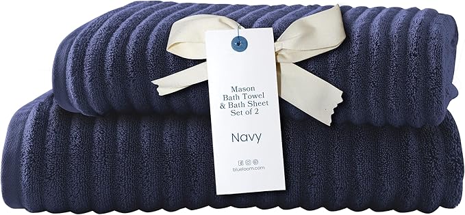 Blue Loom Ribbed Bath Sheet & Towel, 100% Cotton 600 GSM, Soft Absorbent Durable Quick Drying Bath Sheet & Bath Towel Set for Bathroom - Mason Set of 2 Navy (65" x 45" & 58" x 30")