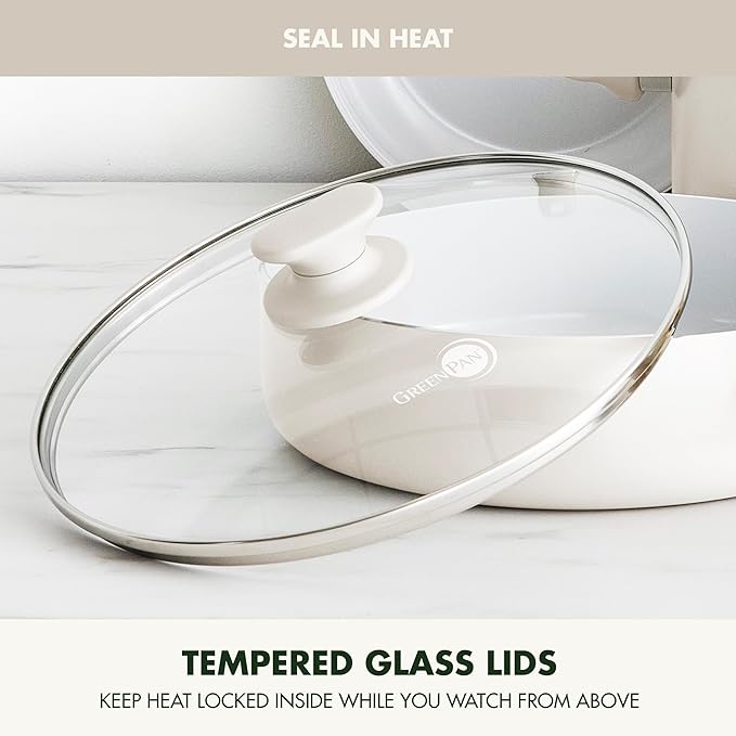 GreenPan Dover Healthy Ceramic Nonstick, 12 Piece Cookware Pots and Pans Set, PFAS-Free, Dishwasher Safe, Comfort Grip Handle, Cream White