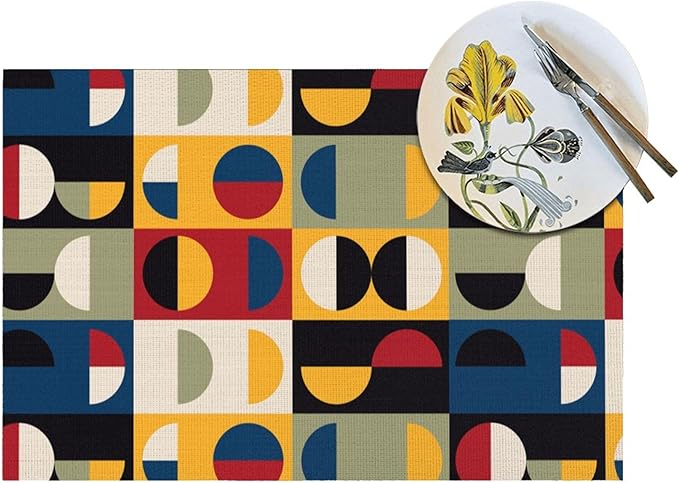Retro Mid Century Modern Placemats Set of 4 Linen Washable Non-Slip Heat-Resistant Decorative Kitchen Table Mats for Dining Outdoor Home Decor 12x18 Inch