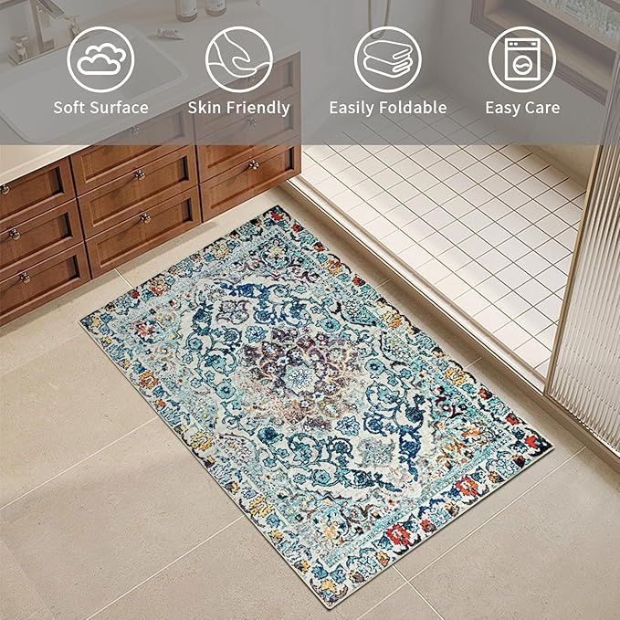 Easy-Going Boho Area Rug 2x3 Washable Entryway Rugs Front Door Mat Indoor Entrance Non-Slip Medallion Distressed Small Entry Rug for Living Room Bedroom Bathroom Lightweight Carpet, Vintage Multi