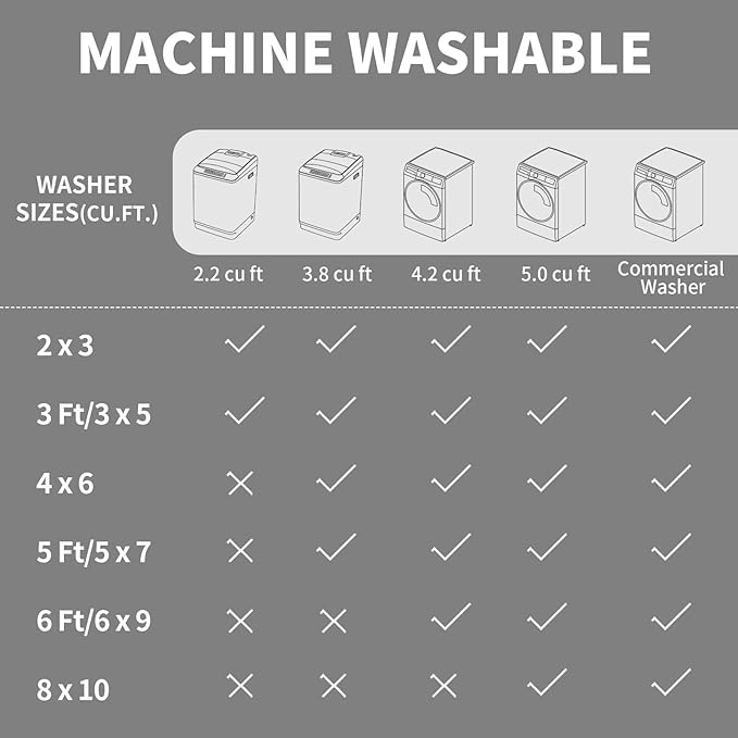 - EASY CARE & MAINTENANCE: Cleaning is effortless with this machine-washable rug. For minor stains, simply spot clean with a damp cloth. Daily dust and debris can be quickly removed with a vacuum or robot cleaner in low-powered mode. For deeper cleaning, toss the rug in the washing machine with mild detergent and air dry to preserve its vibrant colors and quality. Say goodbye to time-consuming manual cleaning!