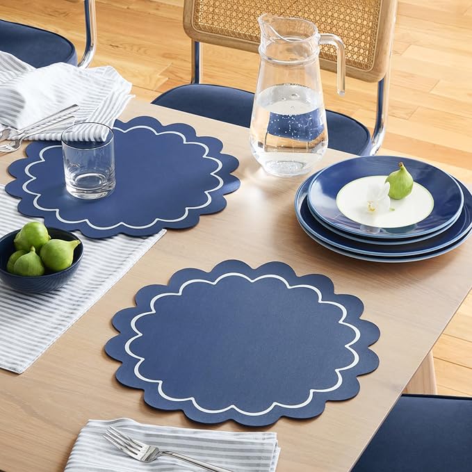 - Coordinates with hand painted shirting stripe napkin and placemat sets