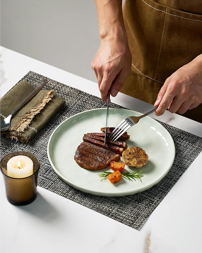 - 【Scratch Resistant】Dinnerware is fired at 2340℉ for 13.5 hours to form a strong scratch resistant surface. No need to worry about scratches from your forks or knives.