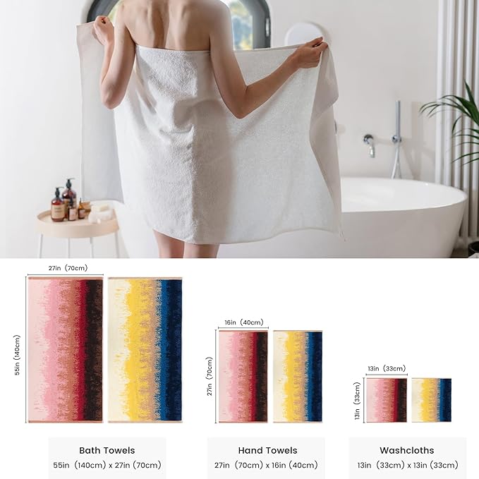 - 【Elegantly Packaged Towel Set】The elegantly boxed set includes 2 bath towels(55"x27"), 2 hand towels(27"x16"), and 2 washcloths(13"x13"), each perfectly sized and functional, adding elegance to your bathroom